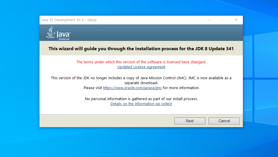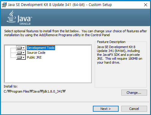 * 다운받은 설치파일( 필자의경우 : jdk-8u341-windows-x64.exe ) 실행